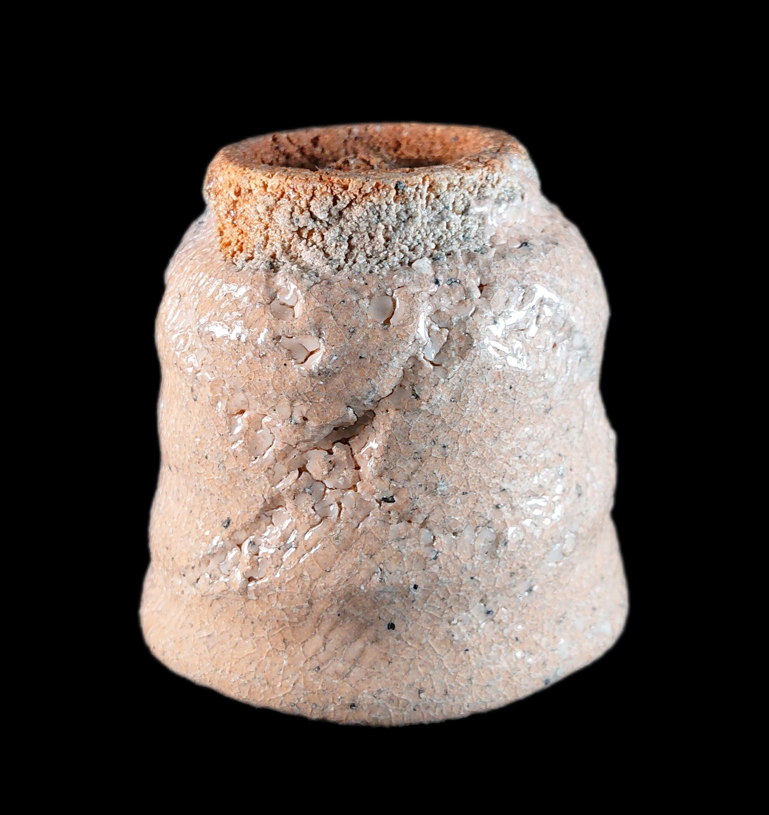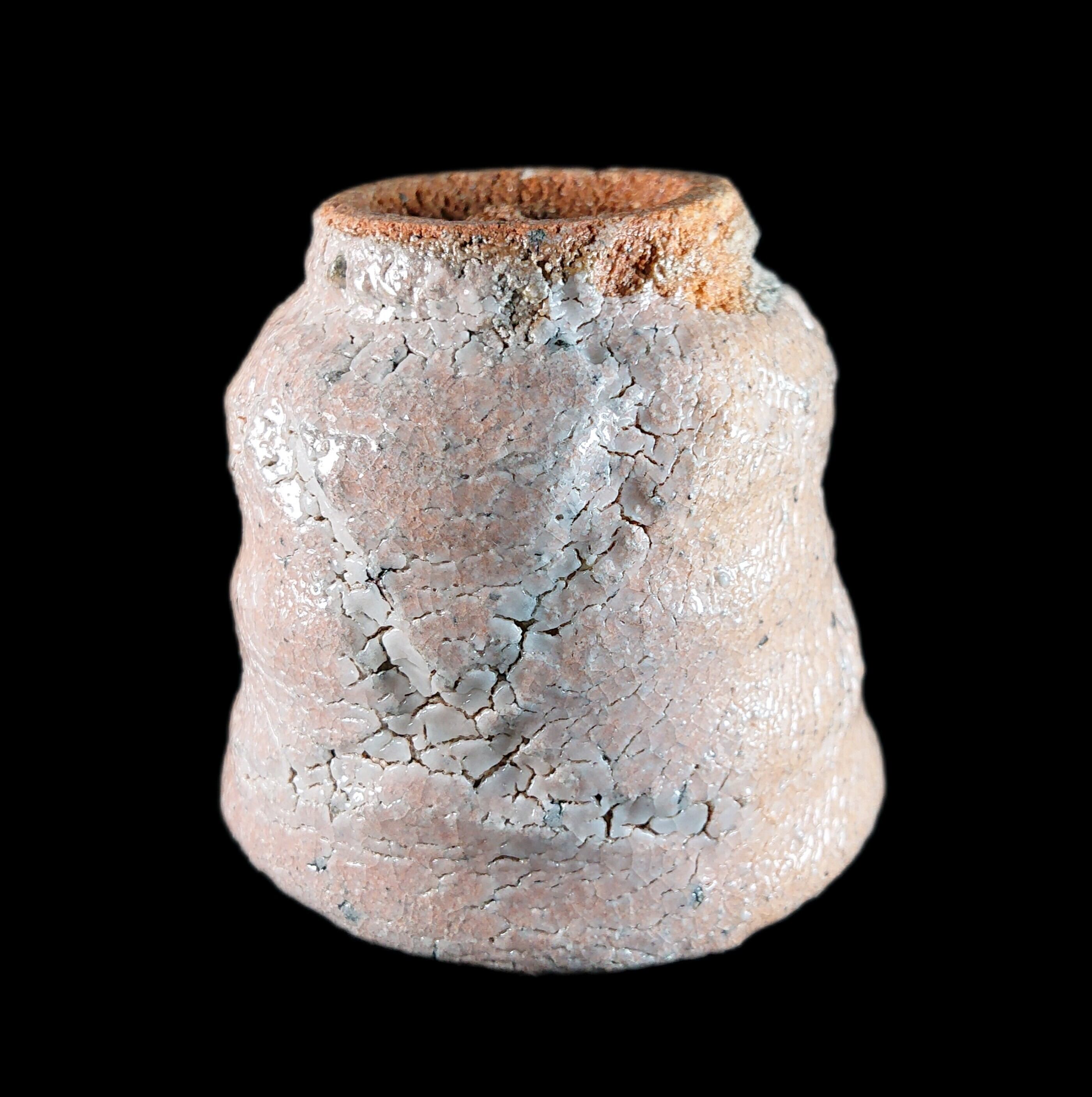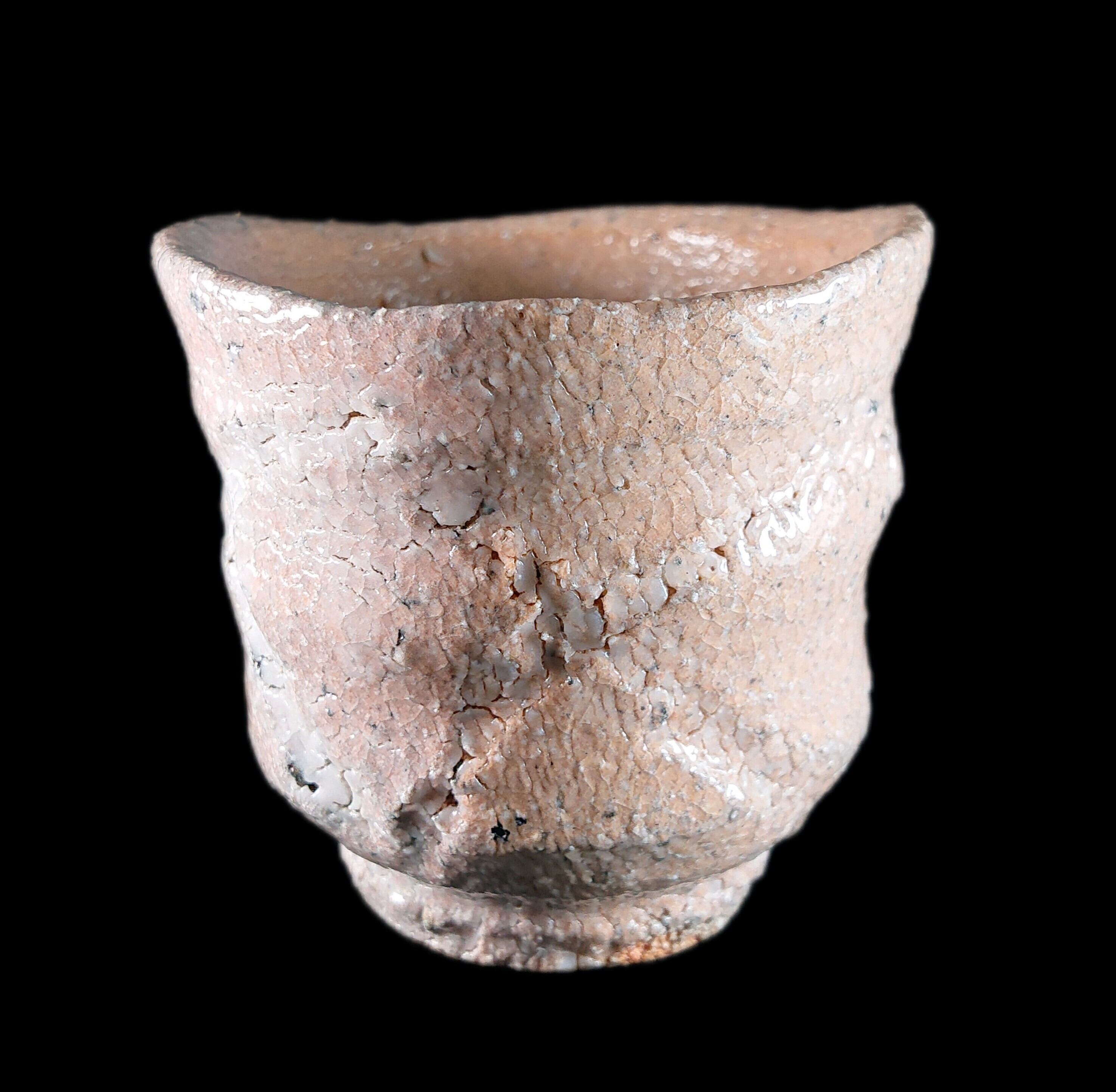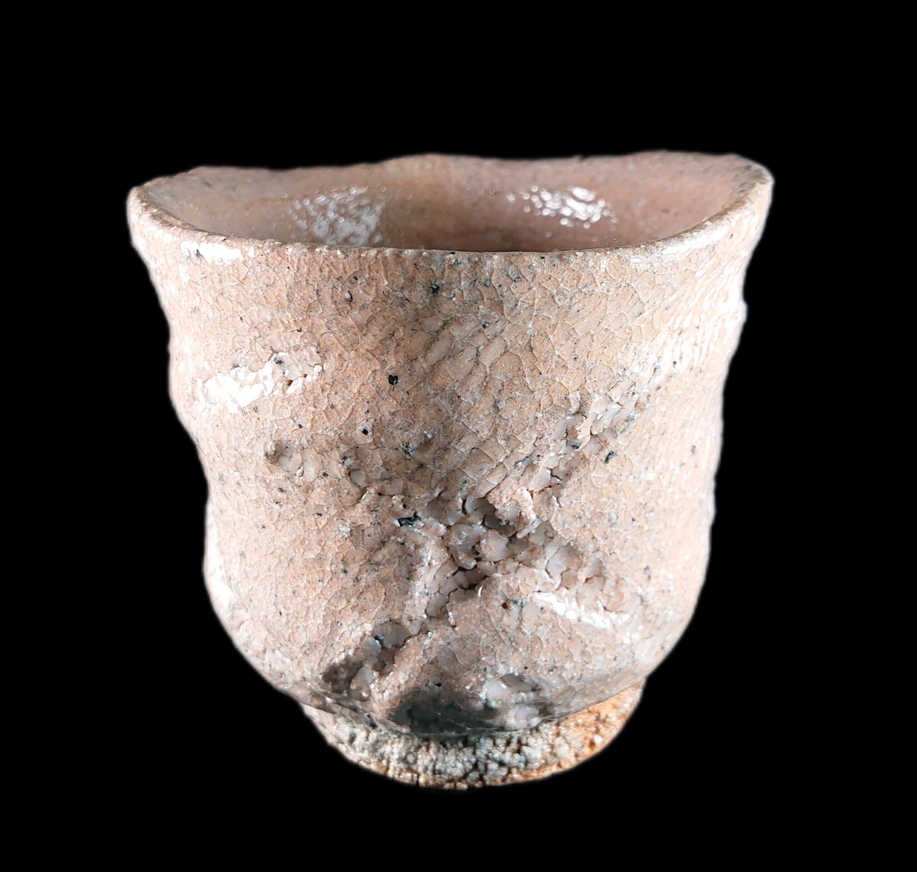 ■彫唐津ぐい呑 川上清美 作品 高さ:約6.5センチ 口径:約6.8~7.5センチ 重さ:162グラム 川上清美さんは、唐津の土味を生かした、大胆で力強い作風で知られる唐津焼作家です。 唐津の土を最大限に生かした迫力の造形,焼成による窯変や火間を作品に取り入れた力強さは一目で川上作品とわかる逸品作品です。