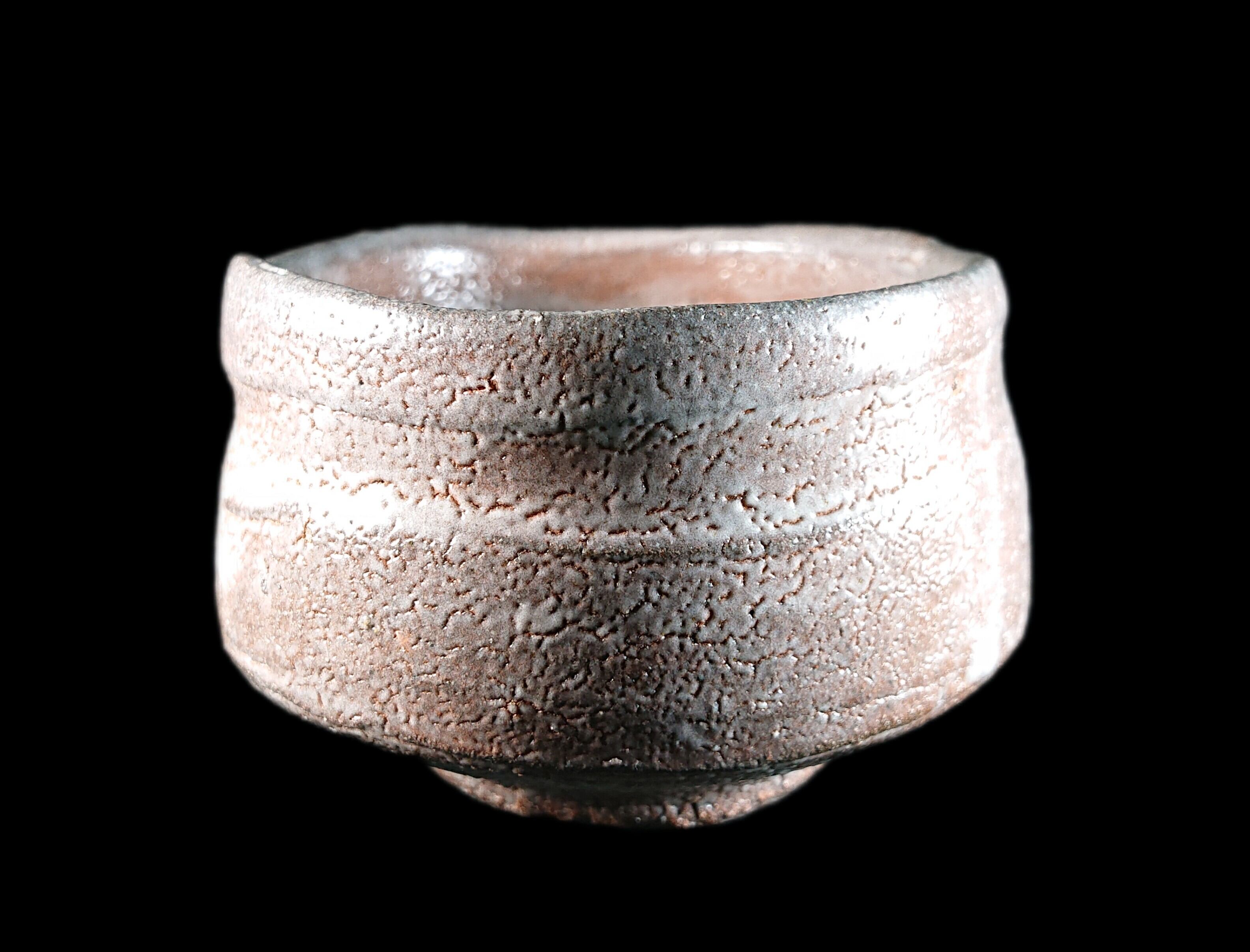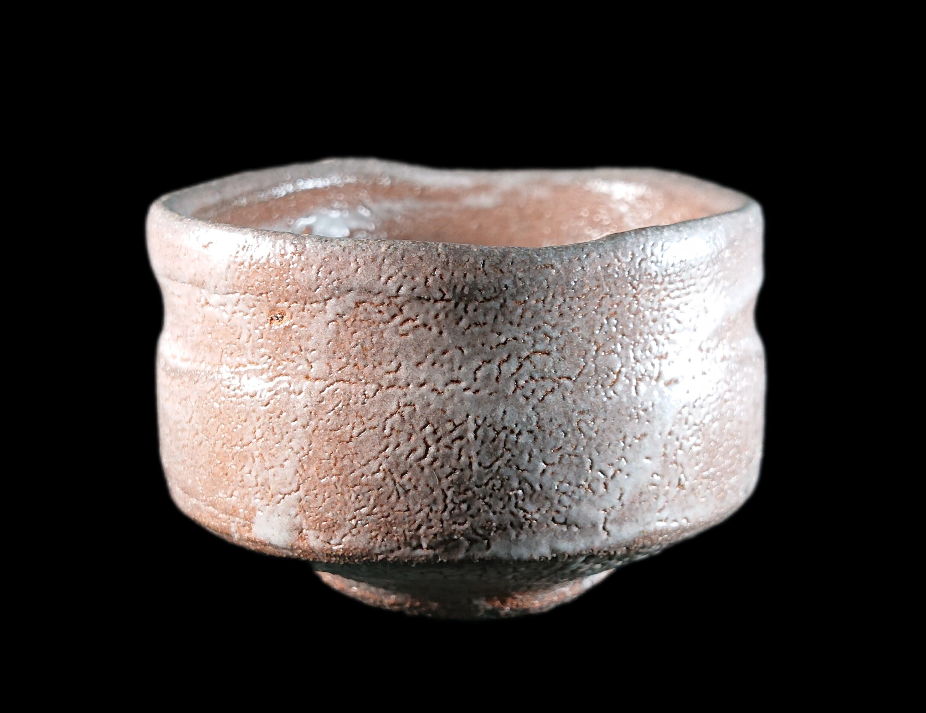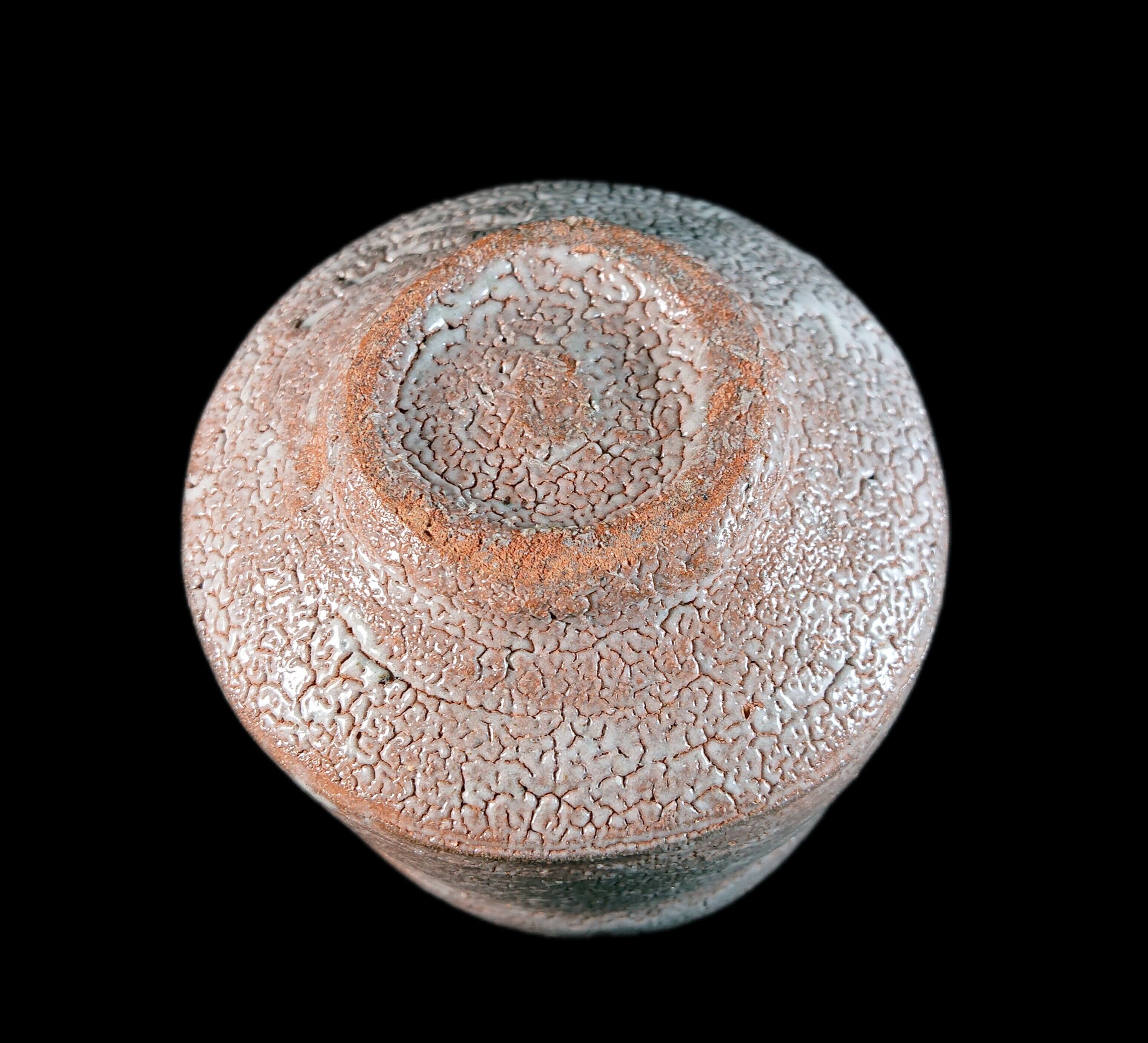 ■唐津焼 川上清美 唐津ぐい呑 共箱、共布、栞あり 迫力の造形に映える窯変梅花皮、唐津の土を生かした迫力作品 唐津焼ぐい呑 唐津焼ぐい呑