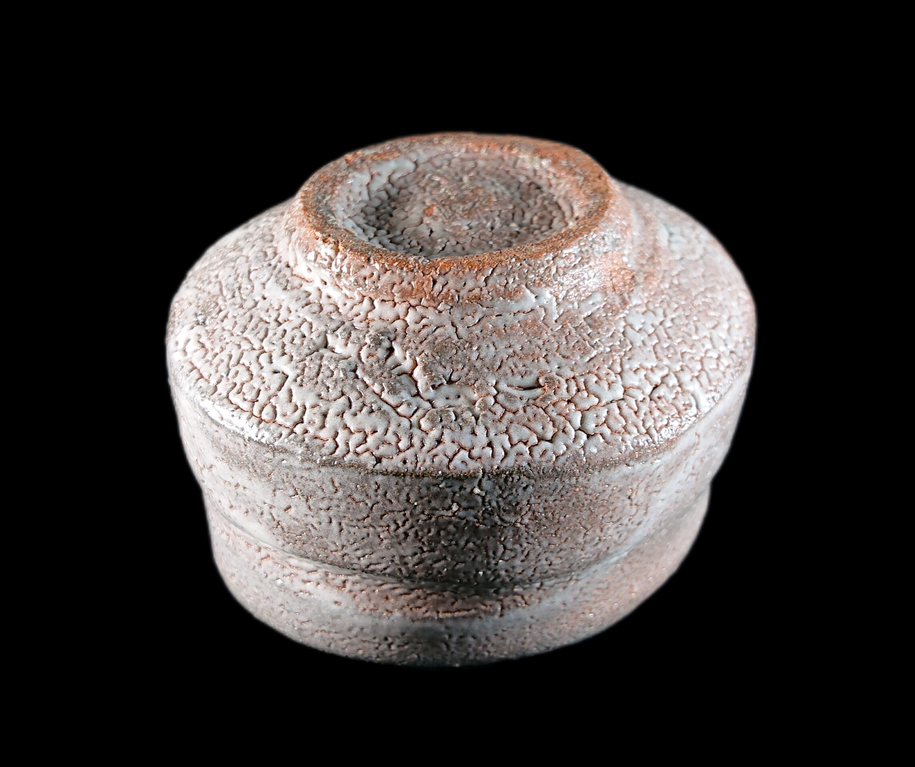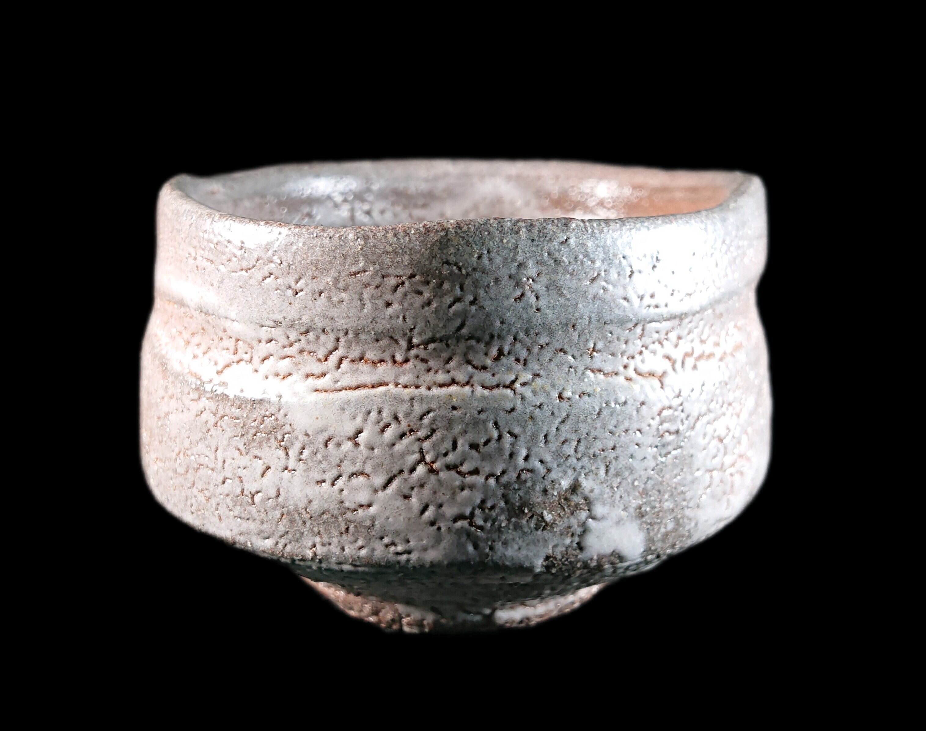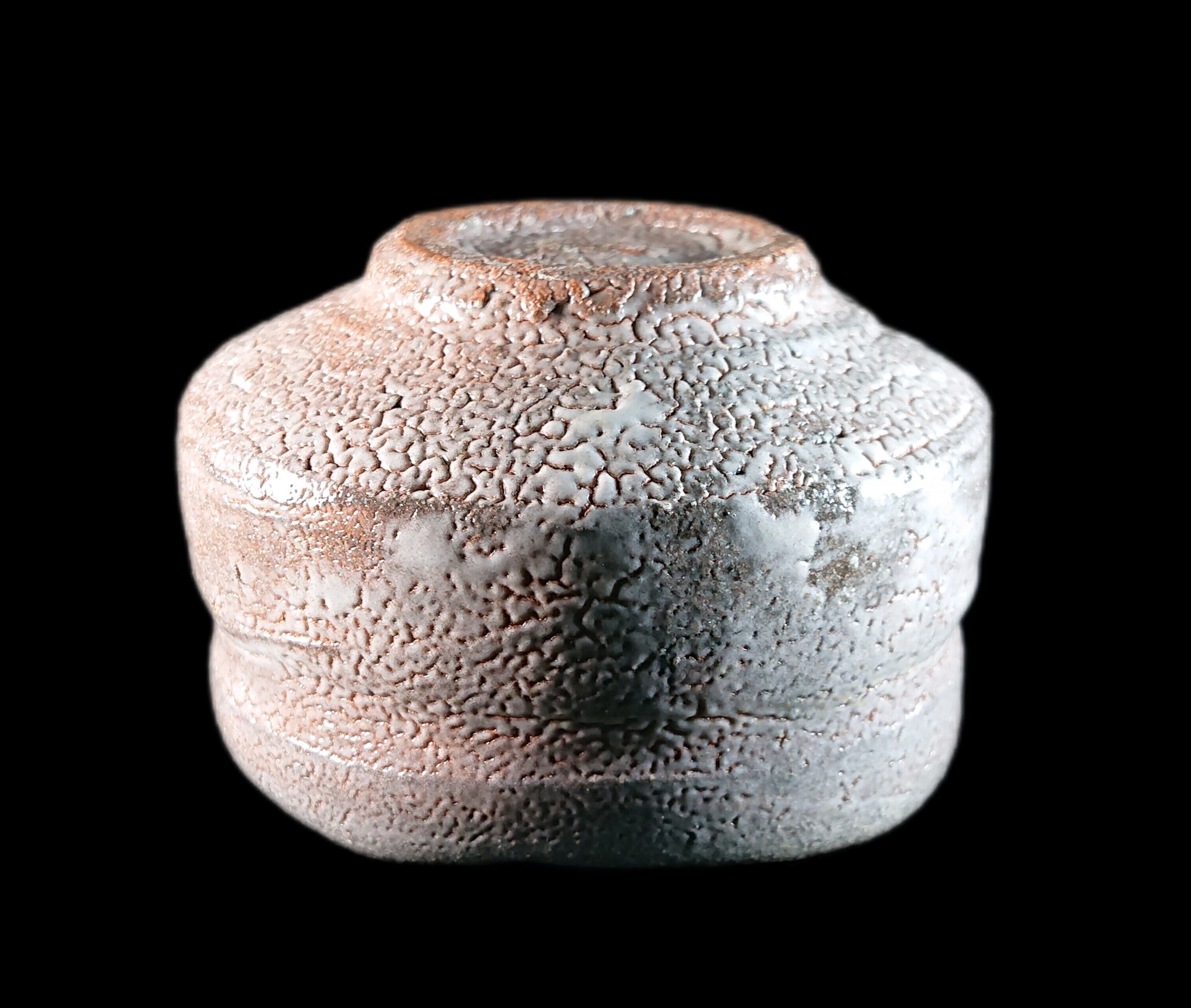 ■唐津焼 川上清美 唐津ぐい呑 共箱、共布、栞あり 迫力の造形に映える窯変梅花皮、唐津の土を生かした迫力作品 唐津焼ぐい呑 唐津焼ぐい呑