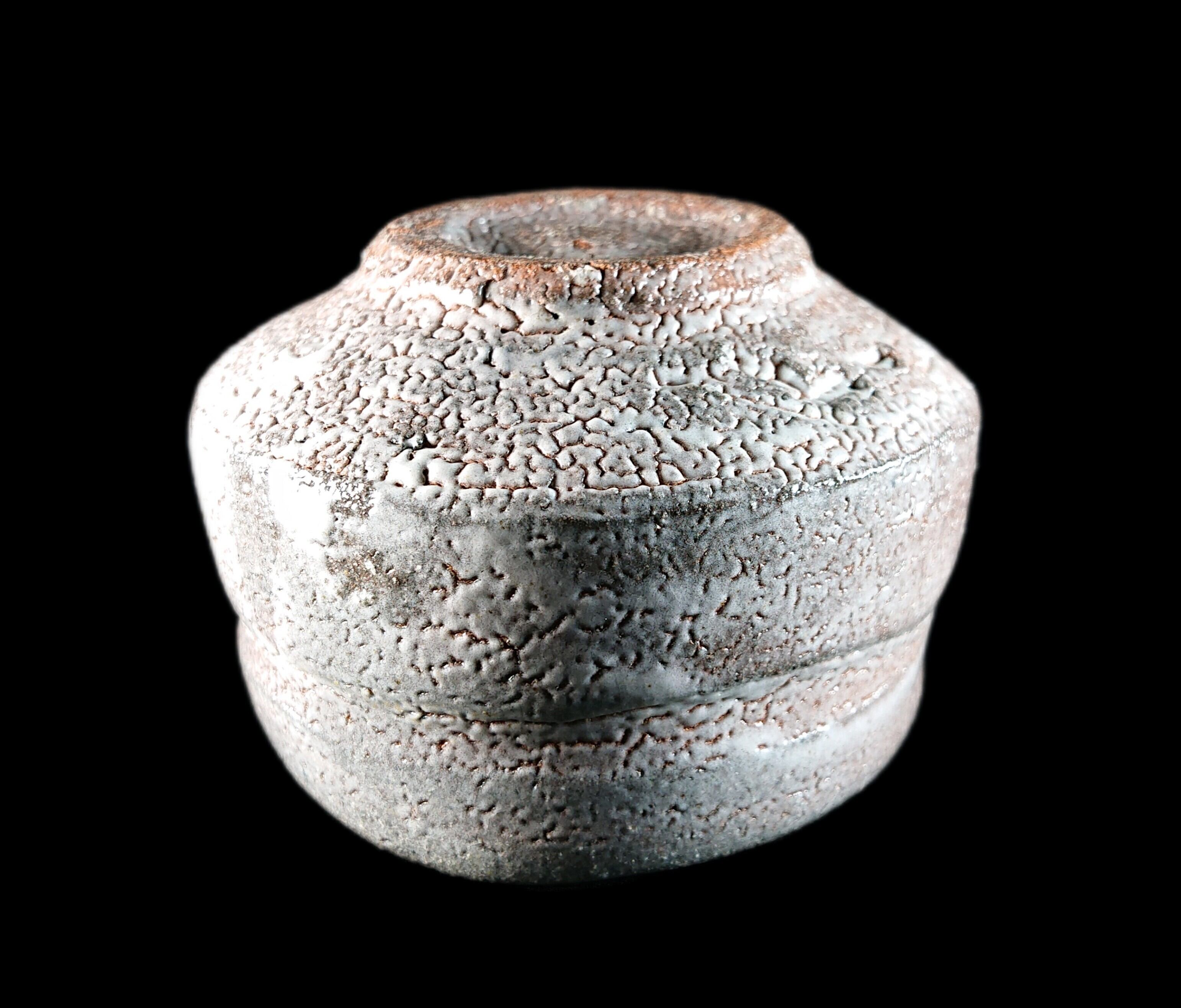 やや鉄分が多い唐津土に表れた柔らかな梅花皮(かいらぎ)、弱還元で焼成した土肌は美しく窯変し、大胆な造形とうまく融合され美しい表情をつくりだしています。