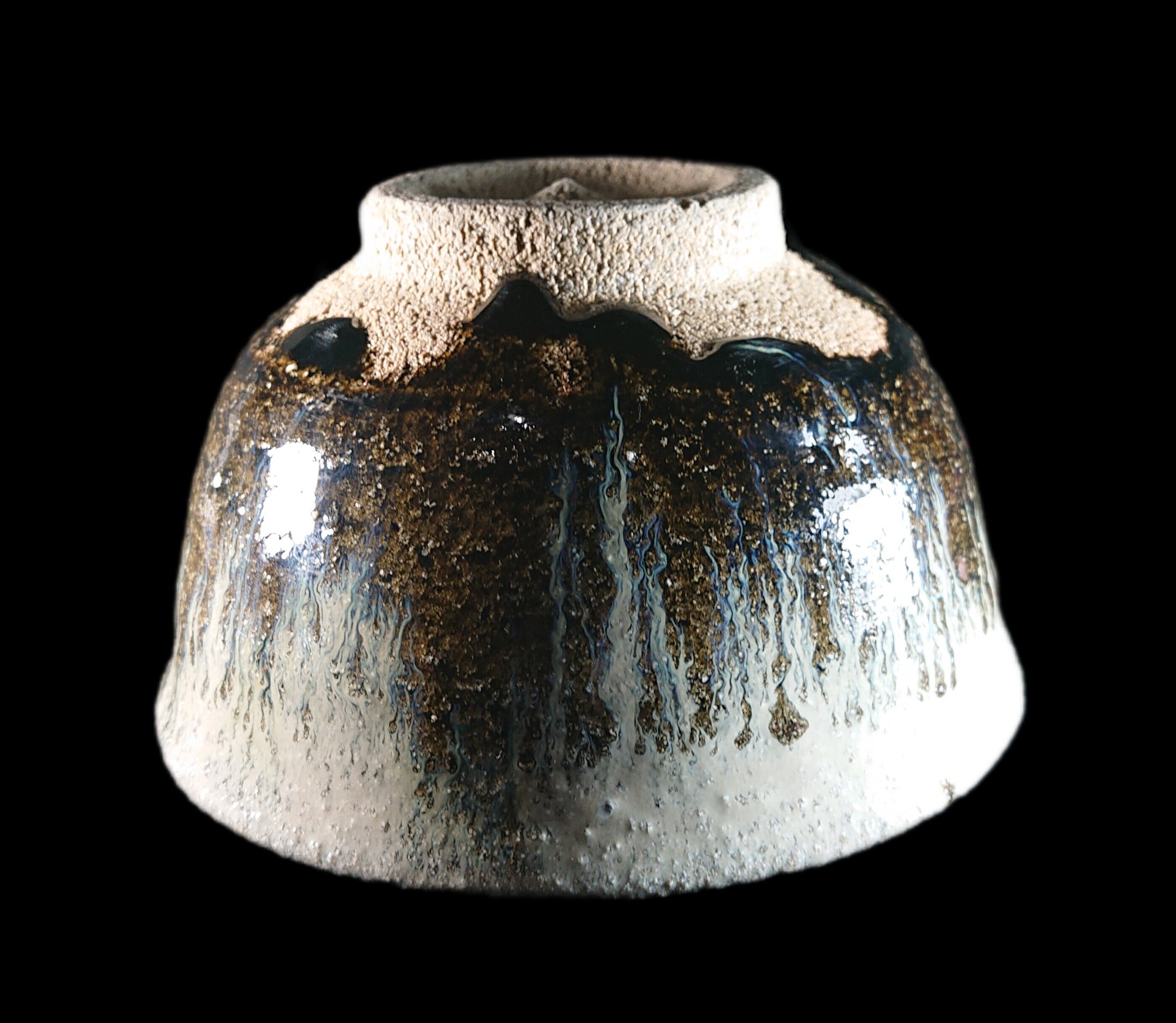 ◼️唐津焼 丸田宗彦 朝鮮唐津茶碗 共箱、共布、栞あり ざっくりと粗い岸岳系の砂岩に鉄釉と斑釉が見事に食いつき景色を醸し出しています。